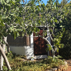As you lay there, welcoming the cool breeze, listening to the sea lapping against the shore and the wind whispering through the pine trees. Cicadas sing somewhere in the dark and if you are lucky the call of the Little Owl. The space seems to roll the stress from your body, expanding the room and the space you feel like you are allowed to take up, in life, as well as in the hut.