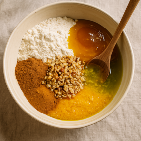 At Skyros we love recipes that feel generous and unfussy. This one is exactly that: a quick oil-based dough, a fragrant syrup, and a final shower of nuts and cinnamon. Put the kettle on, the house is about to smell like Christmas.